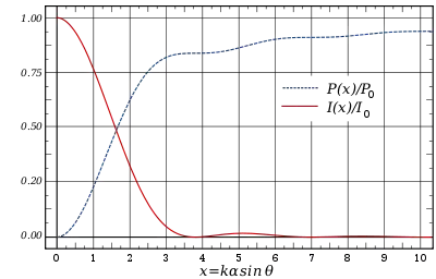 The expression for above can be integrated to give the total power contained in the diffraction pattern within a circle of given size: