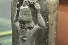 Though there had been kings (and thus obviously royal titles) in Mesopotamia since prehistoric times, the first great "innovator" of royal titles was Naram-Sin of Akkad (r. 2254–2218 BC), the grandson of Sargon of Akkad and the fourth ruler of the Akkadian Empire. Naram-Sin introduced the idea of kingship in the four corners (e.g. the four inhabited regions of the Earth) with the title "King of the Four Corners of the World", probably in geographical terms expressing his dominion over the regions Elam, Subartu, Amurru and Akkad (representing east, north, west and south respectively).[3] It is possible that Naram-Sin might have been inspired to claim the title following his conquest of the city Ebla, in which quadripartite divisions of the world and the universe were prominent parts of the city's ideology and beliefs. Naram-Sin was also the first king to claim divinity for himself during his lifetime. Though both his father Manishtushu and his grandfather Sargon were recognized as divine, they had only been deified posthumously.[4] The adoption of the title "God of Akkad" may have been due to Naram-Sin winning a great victory over a large-scale revolt against his rule. Naram-Sin was also the first Mesopotamian ruler to adopt the epithet dannum ("mighty").[5]