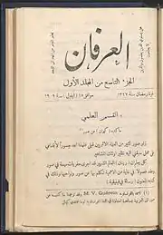 - al-ʿIrfān, 1st Volume, 1st Issue, 1909.