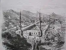 The Saudi takeover was characterized by events similar to those that took place in 1805 when the Prince Mohammed ibn Abdulaziz retook the city on 5 December 1925.[30][31][32][33] After the foundation of the Kingdom of Saudi Arabia in 1932, the mosque underwent several major modifications. In 1951 King Abdulaziz (1932–1953) ordered demolitions around the mosque to make way for new wings to the east and west of the prayer hall, which consisted of concrete columns with pointed arches. Older columns were reinforced with concrete and braced with copper rings at the top. The Suleymaniyya and Mecidiyye minarets were replaced with two minarets in Mamluk revival style. Two additional minarets were erected to the northeast and northwest of the mosque. A library was built along the western wall to house historic Qurans and other religious texts.[29][34]