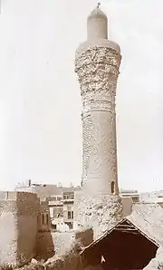 The new caliph was 25 years old. The historian al-Tabari, who lived during his reign, describes him as of "medium size, handsome, of a delicate complexion, with [a full head of] beautiful hair and a luxurious beard".[1][15] Al-Muktafi inherited his father's love of buildings.[1] He completed al-Mu'tadid's third palace project, the Taj ("Crown") Palace, in Baghdad, for which he reused bricks from the palace of the Sasanian rulers in Ctesiphon. Among its numerous buildings was a semicircular tower, known as the "Cupola of the Ass" (Hubbat al-Himar). The caliph could ride to its top mounted on a donkey, and from there gaze on the surrounding countryside. On the site of his father's palace prisons, he also added a Friday mosque to the palace, the Jami al-Qasr ("Palace Mosque"), now known as the Jami al-Khulafa.[16][17] He also emulated his father in avarice and parsimony, which allowed him to leave, despite a short reign with almost continuous warfare, a considerable surplus.[2][18][lower-alpha 1] Thus, in May 903, al-Muktafi left Baghdad and went to the old capital of Samarra, with the intention of moving his seat there, but was quickly dissuaded by the high cost the rebuilding of the city would entail.[20] His easy-going nature, on the other hand, was the antithesis of his father, who was famous for his extreme severity and the cruel and imaginative punishments he inflicted, and al-Muktafi became popular when, soon after his accession, he destroyed his father's underground prisons and gave the site to the people, released prisoners and returned lands confiscated by the government.[2][21]