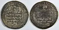Al-Muqtadir's succession was unopposed, and proceeded with the customary ceremonies. The full treasury bequeathed by al-Mu'tadid and al-Muktafi meant that the donatives to the troops could easily be paid, as well as reviving the old practice of gifts to the members of the Hashimite families. The new caliph was also able to display his largess, and solicitude for his subjects, when he ordered the demolition of a suq erected by his predecessor near Bab al-Taq, where the merchants were forced to pay rent, instead of being able to offer their wares freely as before. This benefited the poor of the capital.[22] Nevertheless, the intrigues surrounding his accession had not abated. The supporters of Ibn al-Mu'tazz in particular remained determined to get their candidate on the throne. According to Arib, the vizier al-Abbas had been one of the chief conspirators, but had begun to acquiesce to al-Muqtadir's rule, hoping to control him. His increasingly arrogant behaviour spurred the other conspirators on, and on 16 December 908, the Hamdanid commander al-Husayn ibn Hamdan led a group of men that killed the vizier as he was riding to his garden. The conspirators then sought to seize the young caliph as well, but the latter had managed to flee to the Hasani Palace, where he barricaded himself with his supporters. The ḥājib (chamberlain) Sawsan was the driving force behind the loyalists' resistance, urging the commanders Safi al-Hurami, Mu'nis al-Khadim, and Mu'nis al-Khazin, to defend the caliph. Al-Husayn tried the entire morning to gain entrance, but failed; and then abruptly, and without notifying his fellow conspirators, fled the city to his home of Mosul. In the meantime, the other conspirators, led by Mahmud ibn Dawud ibn al-Jarrah, had assembled in a house and proclaimed Ibn al-Mu'tazz as caliph. This had the support of some of the qāḍīs, who regarded al-Muqtadir's accession as illegal, but others were opposed, reflecting the uncertainty and indecision of the conspirators themselves. Along with Ibn Hamdan's departure, this indecision allowed al-Muqtadir's followers to regain the upper hand: Mu'nis al-Khadim led his ghilmān on boats across the Tigris to the house where Ibn al-Mu'tazz and the conspirators had gathered, and dispersed them—Arib records that Mu'nis' troops attacked the assembled supporters of Ibn al-Mu'tazz with arrows, while Miskawayh claims that they fled as soon as the troops appeared.[23]
