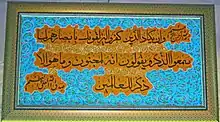 The Verse of Evil Eye (Arabic: آیه وَإِن يَكَادُ) is verse 51 and 52 of Al-Qalam (Q68:51-52) in the Quran. It is usually recited for protection from the evil eye. It states: "And indeed, those who disbelieve would almost make you slip with their eyes when they hear the message, and they say: Indeed, he is mad. But it is not except a reminder to the worlds (68:51 and 52)."[1]