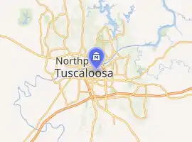 The Alabama Museum of Natural History is the state's natural history museum, located in Smith Hall at the University of Alabama campus in Tuscaloosa. The oldest museum in the state, it was founded in 1831. The exhibits depict the natural diversity of Alabama from the Age of Dinosaurs, the Coal Age, and the Ice Age. Collections include items relating to geology, zoology, mineralogy, paleontology, ethnology, history, and photography.[1] The Grand Gallery Exhibition Hall houses a replica of a Basilosaurus cetoides, an Eocene whale that has been designated as the State Fossil. Exhibits of special interest include the skull of an American mastodon dredged from the Tombigbee River near Demopolis and the Hodges meteorite. The latter hit a woman as it fell to earth near Sylacauga on November 30, 1954.[2] The museum sponsors expeditions throughout the year, as it has since 1979.[3]