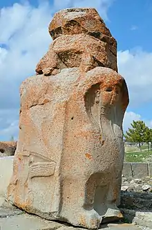 Alacahöyük or Alaca Höyük (sometimes also spelled as Alacahüyük, Aladja-Hoyuk, Euyuk, or Evuk) is the site of a Neolithic and Hittite settlement and is an important archaeological site. It is situated in Alaca, Çorum Province, Turkey, northeast of Boğazkale (formerly and more familiarly Boğazköy), where the ancient capital city Hattusa of the Hittite Empire was situated. Its Hittite name is unknown: connections with Arinna, Tawiniya, and Zippalanda have all been suggested.[1] [2]