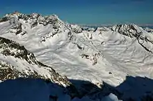 Alagna Valsesia is part of the huge Monterosa Ski area, a ski-resort at the foots of Monte Rosa which connects three different valleys in Piedmont and in Aosta Valley, with 180 km of runs. Through Passo dei Salati at an elevation of 2,980 metres (9,780 ft), Alagna is connected with Gressoney-La-Trinité and Champoluc. Since 2017, a new chair lift, brings from Cimalegna at an elevation of 3,030 metres (9,940 ft) just above the Passo dei Salati permitting the direct access to the freerides routes in the Vallone delle Pisse.