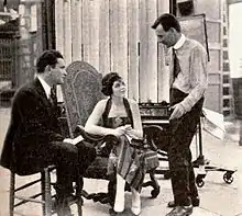 ![]() Alan Crosland (standing) telling stories to Myron Selznick and Elaine Hammerstein, 1919 | |