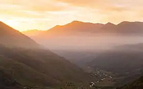 Alaniya National Park (Russian: Национальный парк «Ала́ния»), is a heavily glaciated, mountainous section of the northern slope of the Central Caucasus Mountains. It covers the southern third of the Irafsky District of the Republic of North Ossetia-Alania.[1] The park was created to have a dual purpose of serving as an ecological refuge - it has very high levels of biodiversity and vulnerable species, such as the near-endangered west Caucasian tur – and also an area of high cultural heritage and potential for recreational tourism. The park contains widespread archaeological ruins from several notable past civilizations, including the Bronze Age Koban people (1200–300 BCE), and the Alans people (100 BCE – 1234 AD). It is from the Alans that the name "Alaniya", and indirectly the term "Aryan", is ultimately derived.[2] Because altitudes in the park can span almost 4,000 meters vertical in very short distances, the slopes and valleys display strong 'altitude zoning'. These climatic zones range from alpine glaciers and peaks in the high, southern sections, to steppe grasslands in the northern reaches.[3]