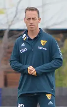 Alastair Clarkson (born 27 April 1968[1]) is an Australian rules football coach and former player. He is the head coach of the Hawthorn Football Club in the Australian Football League (AFL) since 2005, and has the longest continuous service of any current AFL coach.