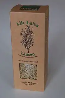 At present, three genotypes of these lentils are used in the Swabian Jura, which are protected by the producers' association under the name of Alb-Leisa. These are the classic Swabian varieties of lentils of the breeder Fritz Späth from Haigerloch: "Späths Alb-Leisa small", "Späths Alb-Leisa large" and "Späths Heller-Leisa".[3]