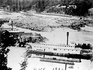 ![]() Steamers Shoo Fly (left) and Albany (right) at boat basin in Oregon City, circa 1873. | |