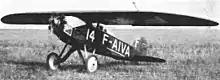 In 1926 this engine was installed in a small, single seat aircraft called the Albert TE.1,[1][2] designed by Robert Duhamel,[3] this aircraft had previously flown in 1925 powered by a 30 kW (40 hp) water-cooled Vaslin V 6 B V6 engine, which had a square radiator on the nose.[4] The TE, or Te in the designation acknowledged the use of multi-layer mahogany skinning methods developed by Alphonse Tellier and widely applied to the construction of early monocoque fuselages.[5] It had a cantilever, one-piece parasol wing built around two wooden box spars, covered with plywood.[1] In plan its trailing edge was straight and unswept and over the inner 50% of the span the leading edge was parallel to it; in the outboard portion the leading edge was curved elliptically. The wing was attached to the raised centre of the fuselage and braced to each fuselage side with a pair of very short struts. With only six attachment points, involving twelve bolts, it was easy to separate wing and fuselage for transport. Narrow, long-span ailerons filled more than two-thirds of the trailing edge; these were operated by control rods, rather than wires.[3]