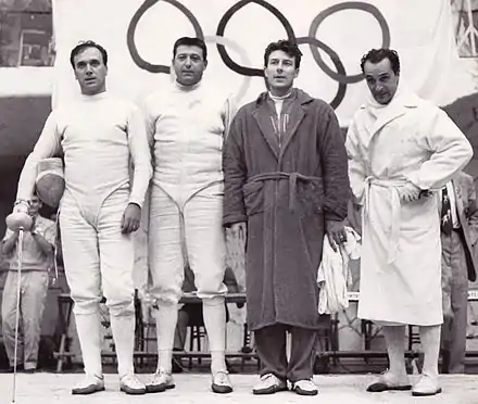 Italian épée team at the 1960 Olympics, Pellegrino is 2nd from right