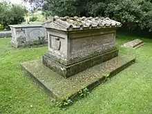 His tomb, alongside that of his nephew Gilbert Heathcote-Drummond-Willoughby, 1st Earl of Ancaster (d. 1910), is to the rear of the Church of St Michael and All Angels at Edenham in Lincolnshire. Together, the tombs are Grade II listed.[2]