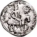 , αλχονο, also αλχοννο)[16] in Bactrian script (a slight adaptation of the Greek script) and the tamgha symbol of their clan.[17][18][11][19] Several original coins such as those of Khingila also bear the mention "alchono" together with the Tamgha symbol.[11]