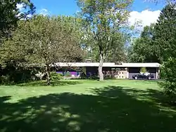 Alcoa Care-free Home is a historic home located at Brighton in Monroe County, New York. It was designed by Charles M. Goodman (1906 – 1992) and is one of 24 Alcoa houses listed in their sales brochure of 1957 that were built for a demonstration project and the only one located New York State. It is a one-story, Ranch-style house with 1,900 square feet (180 m2) of living space, a carport, and a full basement. It is 91 feet (28 m) long and 36 feet (11 m) wide. It is of post and beam construction with a shallow pitched, side gabled roof. It features end walls constructed completely of plate glass framed by aluminum and supported by wood columns that are clad in aluminum.[2]