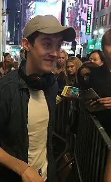 After graduating from the Juilliard School in the summer of 2014, he made his Broadway and acting debut in the play The Curious Incident of the Dog in the Night-Time in the autumn.[13] For his role as the autistic teenager Christopher Boone, he was awarded the Tony Award for Best Actor in a Play, Drama Desk Award for Outstanding Actor in a Play, and the Outer Critics Circle Award.[14][15] As of August 2015, he is the youngest winner of the Tony Award for Best Actor in a Play.[16] Sharp's final performance of Curious Incident was 13 September 2015.[17][18][19]