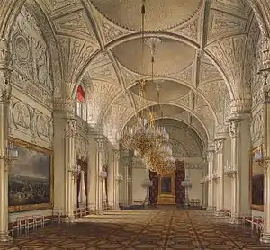 The Alexander Hall of the Winter Palace, St Petersburg, was created following the fire of 1837 by Alexander Briullov.[1] The room commemorates the reign of Emperor Alexander I and the Napoleonic Wars.