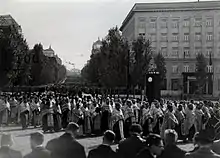 The assassin was a member of the pro-Bulgarian Internal Macedonian Revolutionary Organization (IMRO or VMRO) and an experienced marksman.[69] Immediately after assassinating King Alexander, Chernozemski was cut down by the sword of a mounted French policeman, and then beaten by the crowd. By the time he was removed from the scene, the King was already dead. The IMRO was a political organization that fought for the liberation of the occupied region of Macedonia and becoming independent, initially as some form of second Bulgarian state, followed by a later unification with the Kingdom of Bulgaria.[70] IMRO worked in alliance with the Croatian Ustaše group led by Ante Pavelić.[68][71] Chernozemski and three Croatian accomplices had traveled to France from Hungary via Switzerland. After the assassination, Chernozemski's accomplices were arrested by French police.[68] A prominent diplomat with the Palazzo Chigi, Baron Pompeo Aloisi, expressed fears that the Ustashi based in Italy had killed the King, and sought reassurances from another diplomat, Paolo Cortese, that Italy had not been involved.[63] Aloisi was not reassured when Cortese told him that with Alexander dead, Yugoslavia was about to break up.[63] Public opinion and press in Yugoslavia held that Italy had been crucial in the planning and directing of the assassination.[72] Demonstrations took place outside of the Italian embassy in Belgrade together with the Italian consulates in Zagreb and Ljubljana by people blaming Mussolini for Alexander's assassination.[73] An investigation by the French police quickly established that the assassins had been trained and armed in Hungary, had traveled to France on forged Czechoslovak passports, and frequently telephoned Ustaše leader Ante Pavelić, who was living in Italy.[74] The incident was later used by Yugoslavia as an argument to counter the Croatian attempts of secession and Italian and Hungarian revisionism.[68] The participants in the assassination were Ivan Rajić, Mijo Kralj, Zvonimir Pospišil and Antun Godina. They were sentenced to life in prison although the Yugoslav authorities had expected that they would be sentenced to death. In 1940, after the fall of France they were released from prison by the Nazis.
