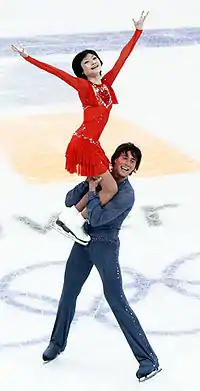 In May 2006,[8] Smirnov teamed up with Japanese skater Yuko Kavaguti to compete for Russia.[9] He said, "We often trained at the same rink and I could see how hard she works. I thought I was a hard worker but after watching her I was really amazed by her work level."[10] They train at the Yubileyny Sports Palace in Saint Petersburg, Russia. They initially worked with Velikov but Kavaguti had been training with Tamara Moskvina since 1998 and preferred to stay with her.[8] They began training with Moskvina in September 2006.