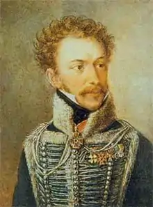 Alexandros Ypsilantis (Greek: Αλέξανδρος Υψηλάντης; Romanian: Alexandru Ipsilanti; Russian: Александр Константинович Ипсиланти Aleksandr Konstantinovich Ipsilanti; 12 December 1792 – 31 January 1828) was a Greek nationalist politician who was member of a prominent Phanariot Greek family, a prince of the Danubian Principalities, a senior officer of the Imperial Russian cavalry during the Napoleonic Wars, and a leader of the Filiki Eteria, a secret organization that coordinated the beginning of the Greek War of Independence against the Ottoman Empire.