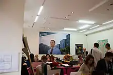 At the same time, in 2005, Navalny started another youth social movement, named "DA! – Democratic Alternative".[lower-alpha 3] The project was not connected to Yabloko (nor any other political party). Within the movement, Navalny participated in a number of projects. In particular, he was one of the organizers of the movement-run political debates, which soon got resonance in the media.[42] Navalny also organized television debates via state-run Moscow channel TV Center; two initial episodes showed high ratings, but the show was suddenly cancelled. According to Navalny, authorities prohibited some people from receiving TV coverage.[42]