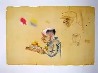 Upon arriving in Paris, Brodovitch wanted to be a painter. A Russian white émigré in Paris, Brodovitch found himself poor and having to work for the first time in his life. He took a job painting houses, while his wife Nina worked as a seamstress.[8] They lived in a cheap, small apartment in the area of Montparnasse, among Russian artists who had settled in Paris at the end of the 19th century. This group of artists, including Archipenko, Chagall, and Nathan Altman, would meet at the inexpensive Académie Vassilieff, which offered painting and sculpting classes without an instructor.[9] His connections with these young Russian artists led to more artistic work as a painter of backdrops for Diaghilev's Ballets Russes.[10]