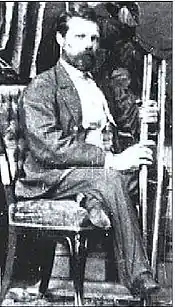 A childhood illness (probably polio) left him unable to walk without the aid of crutches.[2] In 1837, he began auditing classes at the Imperial Academy of Arts; notably, the landscape painting workshops of Maxim Vorobyov. In 1843, he was awarded a silver medal and was granted the title of "Free Artist" in 1845.[3] He became a member of the Academy in 1851 and used his position there to help struggling young artists.