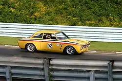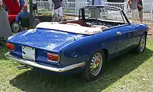 The Alfa Romeo Junior Z was a limited production two-seater coupé with aerodynamic bodywork by Zagato of Milan. The kamm tail wedge-shaped body was designed by Ercole Spada at Zagato.[19] The rear boot lid could be opened a crack (electrically operated) so as to aid in cabin ventilation.[20] The Junior Z was introduced at the 51st Turin Motor Show in November 1969.[21] Unlike Zagato's earlier, race-oriented and aluminium-bodied Giulietta SZ which had a very active competition history, the Junior Z was not specifically intended for racing and did not see much use in competition.