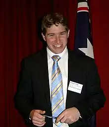 Alistair Bruce Coe (born 9 January 1984) is an Australian politician and a former leader of the Liberal Party and Leader of the Opposition in the Australian Capital Territory (ACT). He has been a member of the ACT Legislative Assembly since the 2008 election, representing the Ginninderra electorate from 2008 to 2016 and the Yerrabi electorate since 2016.[1][2][3] As Opposition Leader Coe led the Liberal Party to defeat at the 2020 election, and afterwards chose not to re-contest the party's leadership position.[4]