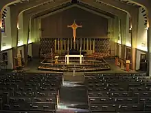 A ten-year effort to establish the parish in a newly constructed church building was initiated by Rev. Mark Carpenter in 1948. The new church building at the parish's present location was designed by the architect Clinton B. Gamble, an All Saints member.[1][4][5] The parish donated its former church building to St. Christopher’s Parish, another local Episcopal congregation. The new church building was consecrated on November 6, 1958, and the parish continued to add classrooms, a music room, and a kitchen to the church facilities over the years.