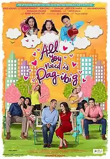 All You Need is Pag-ibig (lit. 'All You Need is Love') is a 2015 Filipino romantic comedy film directed by Antoinette Jadaone and released by Star Cinema and Viva Films. As their official entry to 2015 Metro Manila Film Festival. It stars an ensemble cast including Kris Aquino, Bimby Aquino Yap, Derek Ramsay, Kim Chiu, Xian Lim, Ronaldo Valdez, Nova Villa, Pokwang, Jodi Sta. Maria and Ian Veneracion.