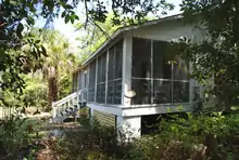The Allen-Lockwood House is located in Bluffton, South Carolina. It was built in 1850. This cottage was built by William Gaston Allen on the northwest corner of Calhoun and Water Streets for his wife Susan Virginia Bolan and their six children. It is a classic example of the Lowcountry summer cottage with its gabled roof, high-ceiling rooms and numerous windows for cross-ventilation. Raised on brick piers, a wide porch spans the south facade.