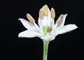 Uses have included as ornamental plants, including cut and dried flowers, culinary herbs, and traditional medicine. Garlic chives have been widely cultivated for centuries in East Asia for their culinary value. The flat leaves, the stalks, and immature, unopened flower buds are used as flavouring.[23] Another form is "blanched" by regrowing after cutting under cover to produce white-yellow leaves and a subtler flavor.[24]