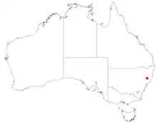 It is found in a very restricted are of New South Wales: from Bralga Tops to Curricabark and Glenrock.[1]