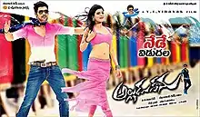 The first look posters were also released on the same day itself but none of them featured the title of the film.[14] New posters were released after the shoot at Japan but they too didn't bear the title of the film. But Sai Sreenivas and Samantha were appreciated for their looks in those posters.[58] The title logo of the film was revealed on 6 June 2014.[59] The first look poster bearing the title and few stills were released on 21 June 2014.[60][61] Those stills received positive response and Samantha's glamour in those stills received a strong positive response.[62] The theatrical trailer and video promos of the songs were released on 29 June 2014 and they received positive response in which Sreenivas was appreciated for his dances, looks, acting and fighting skills; Samantha and Tamannaah were appreciated for their glamour show.[63] Particularly, Tamannaah's item number received great positive response which generated good buzz for the film.[49]