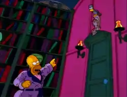 - The Simpsons episode "Treehouse of Horror" parodies the poem in its third segment as Lisa reads the story to Bart and Maggie. In the animated segment, Homer serves as the protagonist, Bart takes the raven's form, Marge appears in a painting as Lenore and Lisa and Maggie are angels. Bart complains that the poem is not scary, and at one point the raven says his catchphrase "Eat my shorts" instead of "Nevermore." Homer provides the spoken dialogue for the narrator, while James Earl Jones voices his thoughts. Much of the story is cut for time for this segment. The story culminates (after the last two lines of stanza 17 are repeated again) with Homer chasing the Bart-raven around the study before the last stanza (before said last stanza is told, the Bart-raven drops books of other stories by Poe onto Homer). Poe and "The Raven" are also referenced in the episode "Saturdays of Thunder", when Dr Nick Riviera appears in an infomercial promoting a cleaning product that will clean dirty grave stones. Troy McClure responds to Riviera with: "Quoth the raven, 'What a shine'."