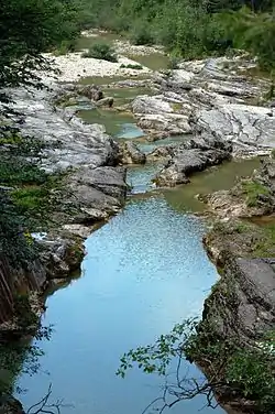 ![]() The Almbach, flowing through the Felsenbad at Faistenau | |