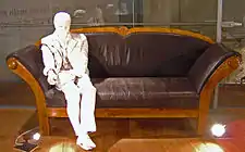 On the morning of 3 January 1903, Alois went to the Gasthaus Wiesinger (no. 1 Michaelsbergstrasse, Leonding) as usual to drink his morning glass of wine. He was offered the newspaper and promptly collapsed. He was taken to an adjoining room and a doctor was summoned, but he died at the inn, probably from a pleural hemorrhage. Adolf Hitler, who was 13 when his father died, wrote in Mein Kampf that he died of a "stroke of apoplexy".[39] In his book, The Young Hitler I Knew, Hitler's childhood friend August Kubizek recalled, "When the fourteen-year-old [sic] son saw his dead father he burst out into uncontrollable weeping."