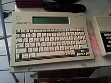 The AlphaSmart was a brand of portable, battery powered, word-processing keyboards manufactured by NEO Direct, Inc. (formerly Renaissance Learning, Inc, formerly AlphaSmart, Inc., formerly Intelligent Peripheral Devices, Inc.). Originally released in 1993, the first AlphaSmart models were intended for writing on-the-go and could be plugged into a computer to transfer saved written text. The units' portability and long battery life made them valuable to journalists, writers, and students. Later models expanded functionality by spell-checking, running applications, and accessing wireless printers.