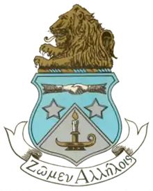 The open motto of ADPi is "We Live for Each Other," and its colors are azure blue and white. To the sorority, blue is symbolic of friendship, which the sorority cites as one of its founding values; white symbolizes sincerity and truth, which are two qualities the sorority states it looks for in its members.[5] The official flower is the woodland violet; however, since woodland violets are found in the wild and not available for purchase, people often substitute the African violet. The official jewel and symbol is the diamond, which the sorority uses as a symbol of "the enduring strength and value of friendship".[6] The mascot for Alpha Delta Pi is a lion with the nickname of Alphie.[7] Alpha Delta Pi currently has 161 chapters in the United States and Canada, with the majority concentrated in the southern United States, and over 150 alumnae associations. Its national philanthropy is the Ronald McDonald House Charities.