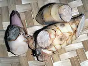 Lengkuas is native to Southeast Asia. Its original center of cultivation during the spice trade was Java, and today it is still cultivated extensively in Island Southeast Asia, most notably in the Greater Sunda Islands and the Philippines. Its cultivation has also spread into Mainland Southeast Asia, most notably Thailand.[5][6] Lengkuas is also the source of the leaves used to make nanel among the Kavalan people of Taiwan, a rolled leaf instrument used as a traditional children's toy common among Austronesian cultures.[7]