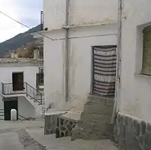 The terracing and the irrigation of the hillsides (the "Alpujarra alta") was the work of Berbers, who inhabited this area after the Moorish invasion of 711 AD. They also created villages on the hillsides in the style to which they were accustomed in the mountains of North Africa: narrow, winding streets and small flat-roofed houses.