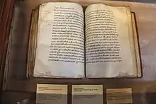 The first known Moravian ruler, Mojmir I, assisted the rebellious subjects of Louis the German, the King of East Francia, several times.[6] During his reign, priests came from the Bishopric of Passau (a suffragan of the Archbishopric of Salzburg) to proselytize among the Moravians.[7] Louis the German expelled Mojmir from Moravia in 846.[6] In an attempt to diminish the influence of the German clerics, Mojmir's nephew and successor, Rastislav, requested priests from the Byzantine Empire in the early 860s.[8][7] Emperor Michael III and Patriarch Photius sent two brothers, Saints Cyril and Methodius, to Moravia.[8] The brothers started to translate liturgical texts into Old Church Slavonic in Moravia.[9] Methodius, who survived his brother, was consecrated as archbishop by Pope Hadrian II in Rome in 869.[7] Under the pope's decision, Moravia, the realm of Rastislav's nephew, Svatopluk, and the Pannonian domains of Koceľ fell within Methodius's jurisdiction, which caused conflicts with the archbishops of Salzburg.[10]