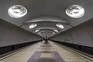 Altufyevo (Russian: Алтуфьево, IPA: [ɐlˈtufʲjɪvə]) is the northern terminus of the Serpukhovsko-Timiryazevskaya Line of the Moscow Metro, and the northernmost station of the entire system. It was opened in 1994. The station is shallow: its depth is 9 meters. Its name corresponds to the name of the city district. The station is quite busy, with over 70,000 passengers entering per day, due to being located in a densely populated region, and being one of the stations serving the satellite town of Dolgoprudny. The station has experienced leaks from the unsuitable soil in its location. Although it might not happen, reconstruction of the station will treat the leakage.