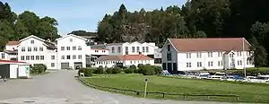 Alvøen Manor was the main residence of the owners of the paper factory of Alvøen. Alvøen Manor was originally built as a countryside retreat for members of the Fasmer family in 1797. Eventually the roccoco main building was surrounded by several gardens.[6][7] Alvøen Manor and the factory were opened as a museum (Alvøen Hovedbygning) in 1983, as a branch of the West Norway Museum of Decorative Art. It is now managed by the Bergen City Museum. The site includes Alvøen Manor together with some forty worker cottages and production buildings dating from the 1800s.[8]