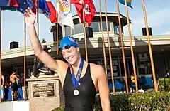 Amanda Jo Weir (born March 11, 1986) is an American competition swimmer, Olympic silver medalist, world champion, and former world record-holder. She was a member of the 2004 and 2012 United States Olympic teams, winning two silver medals at the 2004 Games and a bronze medal in the 4×100-meter freestyle relay at the 2012 Summer Olympics.[1]