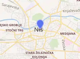 Opened in 1968, it is in the middle of the town center, and in front of the hotel is the Monument to the Liberators of Niš. The Niš Fortress can be found just across the river Nišava.[1]
