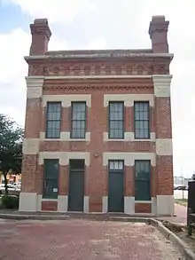 The rectangular shaped building measures 32 feet (9.8 m) by 88 feet (27 m) and its exterior architecture demonstrates its importance to the Illinois Central Railroad. Constructed of red brick with extensive limestone detailing, the depot's size, height, and ornate brick/stone detailing combine to give it an imposing and elegant character.[2]