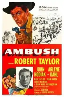 Ambush is a 1950 American Western film directed by Sam Wood and starring Robert Taylor, John Hodiak and Arlene Dahl. The plot is based on the serial story Ambush by Luke Short in The Saturday Evening Post (25 Dec 1948–12 Feb 1949). It is also the first MGM film in the 1950s'. [3]